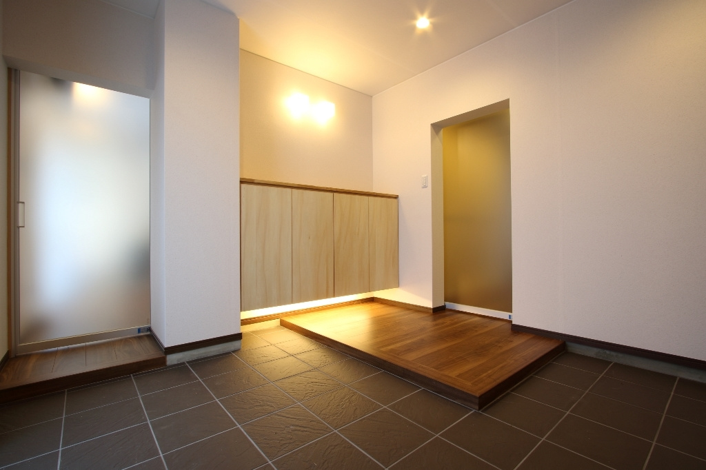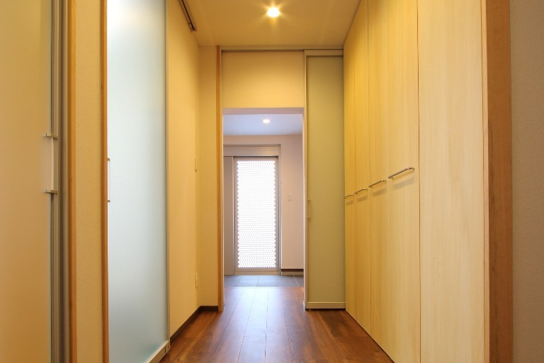 60代女性がメインに暮らすことから、和の要素をモダンになじむようにするために、天井と壁は和紙貼として、柔らかな表情を大切にした。